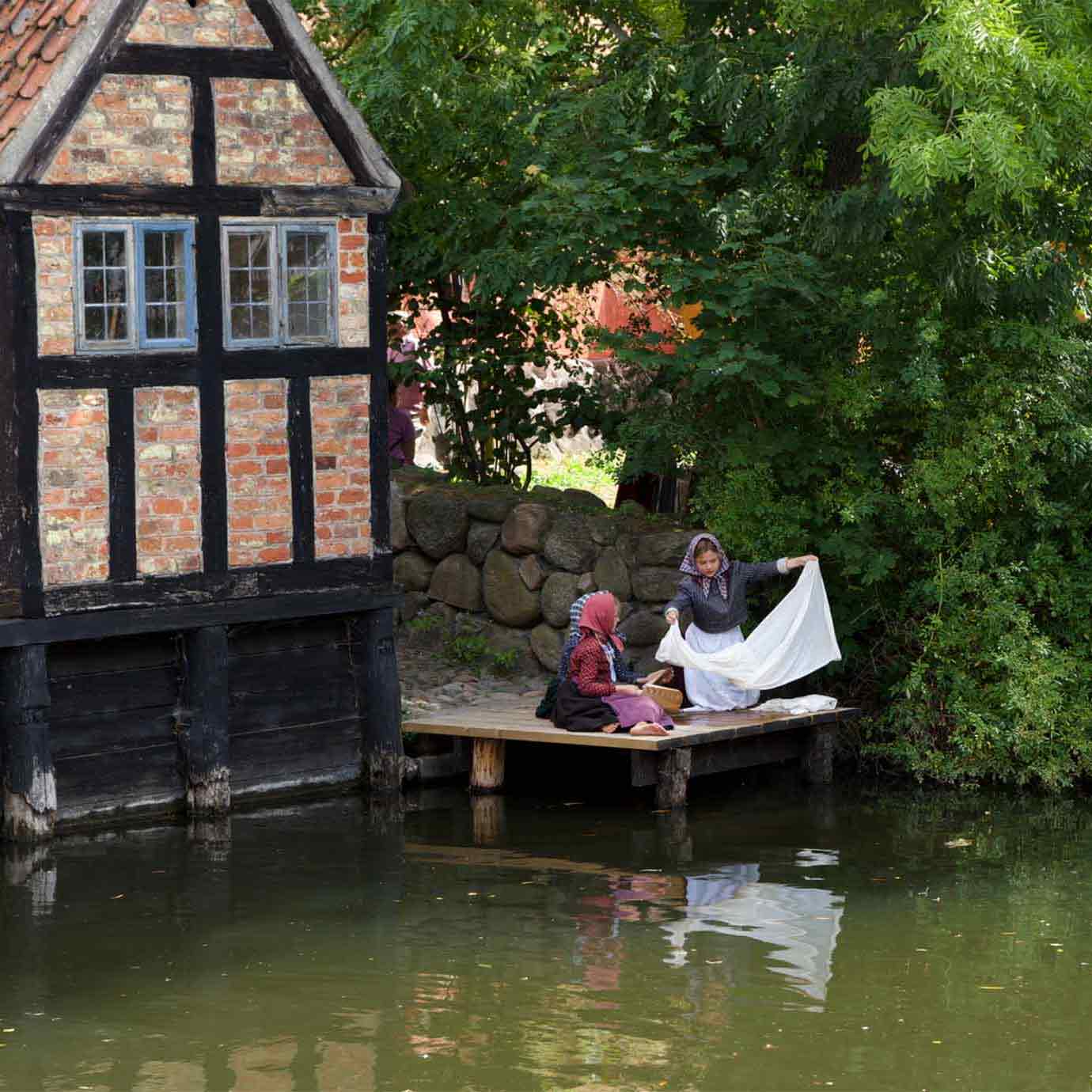 Besøg en dansk by, som den var på H.C. Andersens tid – og tidligere. Mød fortidens mennesker, se deres stuer og køkkener, og gå på opdagelse i deres haver. Kig ind i købmandsgården og køb en vaniljekrans hos bageren. Klap hestene, pas på gæssene og prøv stylterne. Byens huse er i bindingsværk og er flyttet hertil fra byer i hele Danmark. Se, hør, duft, smag, prøv, opdag – og forstå.